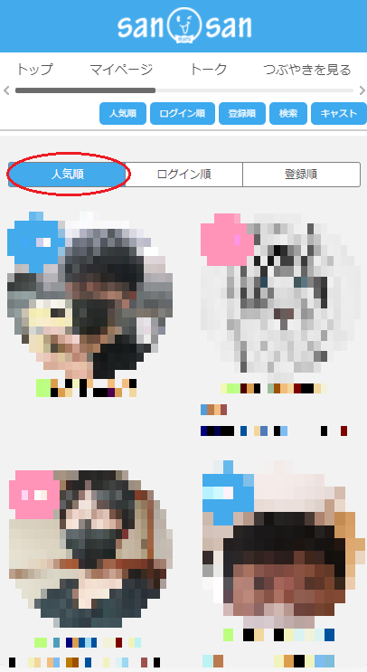 ログイン後のトップページ右上にある「人気順」をタップすると、その名の通り人気の高い順にゲストが表示されます。